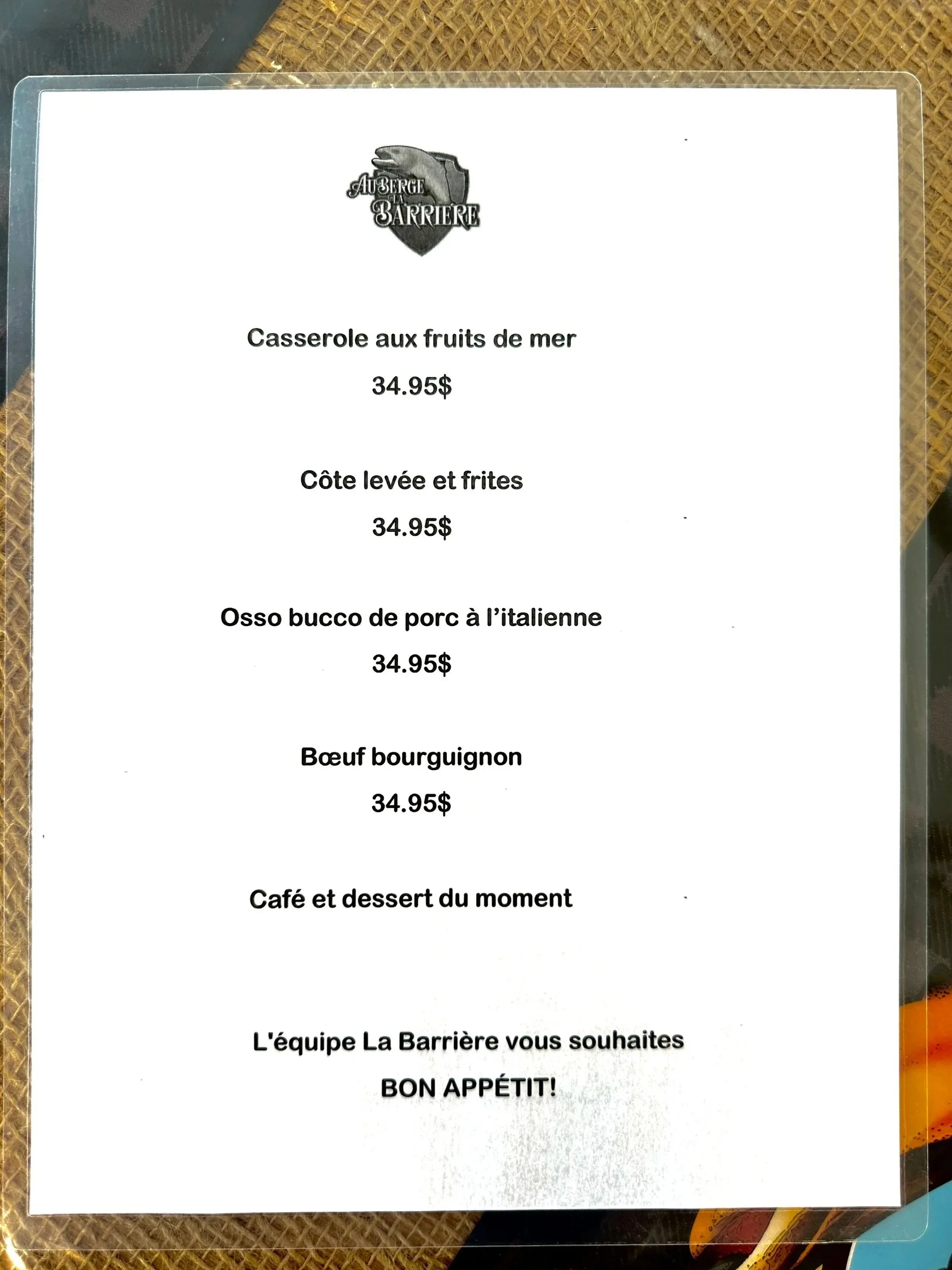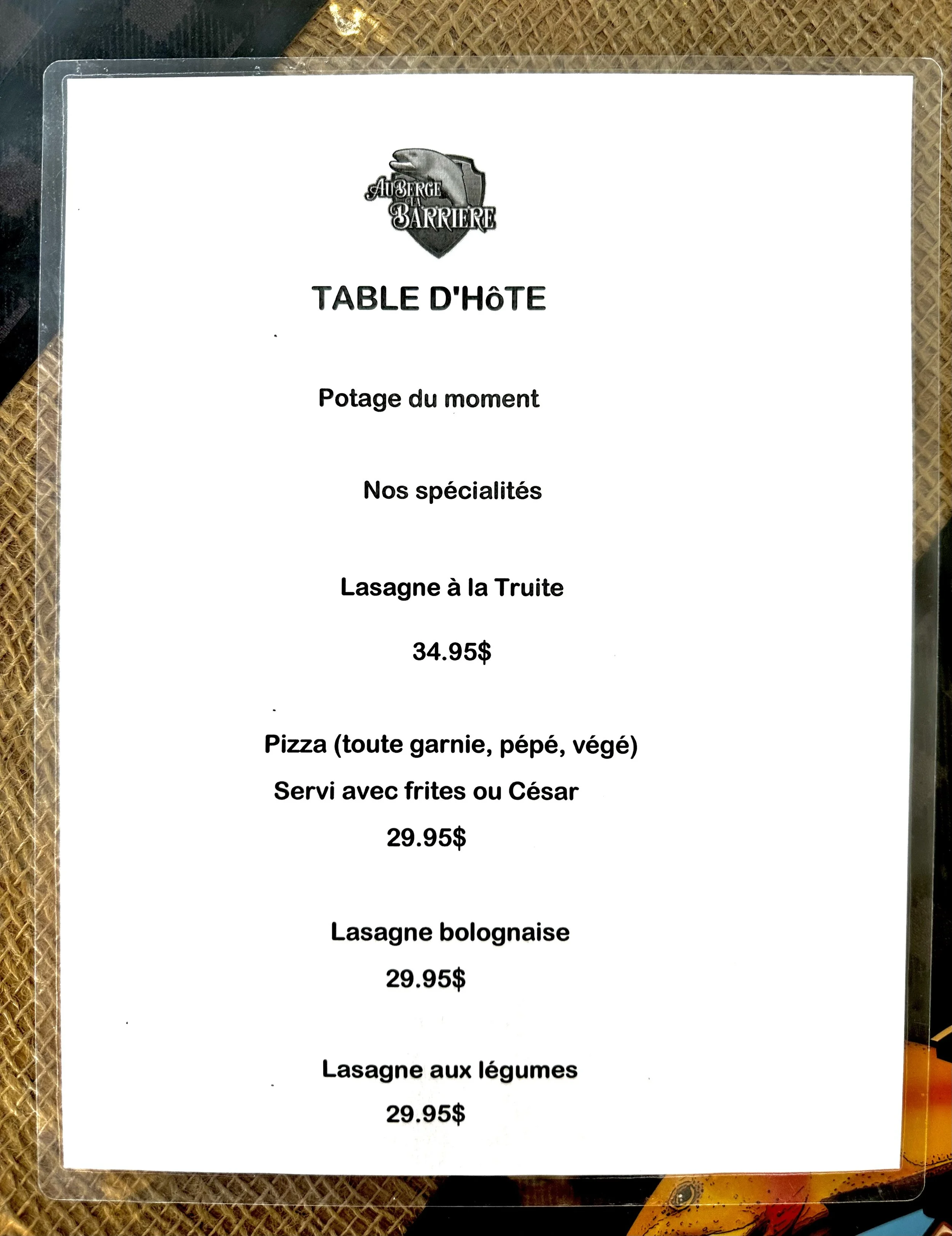 Vous pouvez consulter nos menus restaurant ci-haut pour plus de détails.